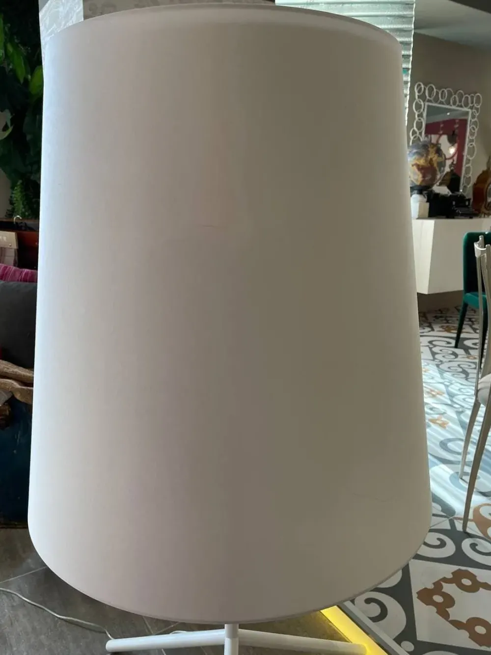 Lampada da terra modello BIG WAVE si compone con struttura in metallo bianco e ampio diffusore in tessuto bianco. Il classico paralume a forma di cono tronco, viene proposto nella lampada da terra BIG WAVE in versione XXL, creando un forte impatto visivo.