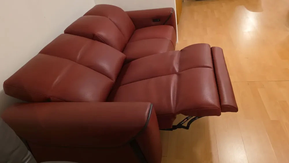 Comfort moderno e funzionalità si incontrano in questo divano 2 posti in vera pelle color bordeaux, pensato per regalarti momenti di puro relax. Grazie al meccanismo elettrico reclinabile, puoi regolare l apertura della seduta in totale autonomia, con un semplice gesto.