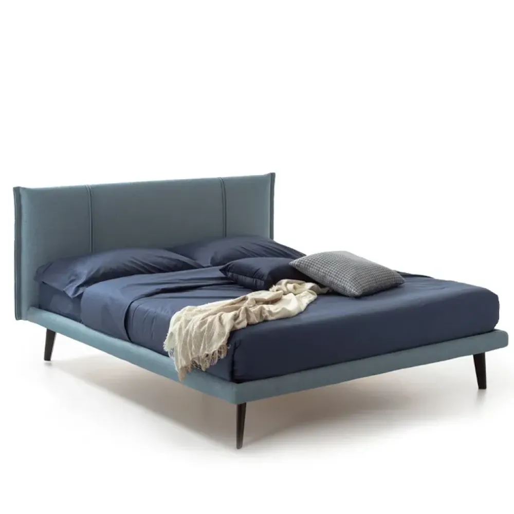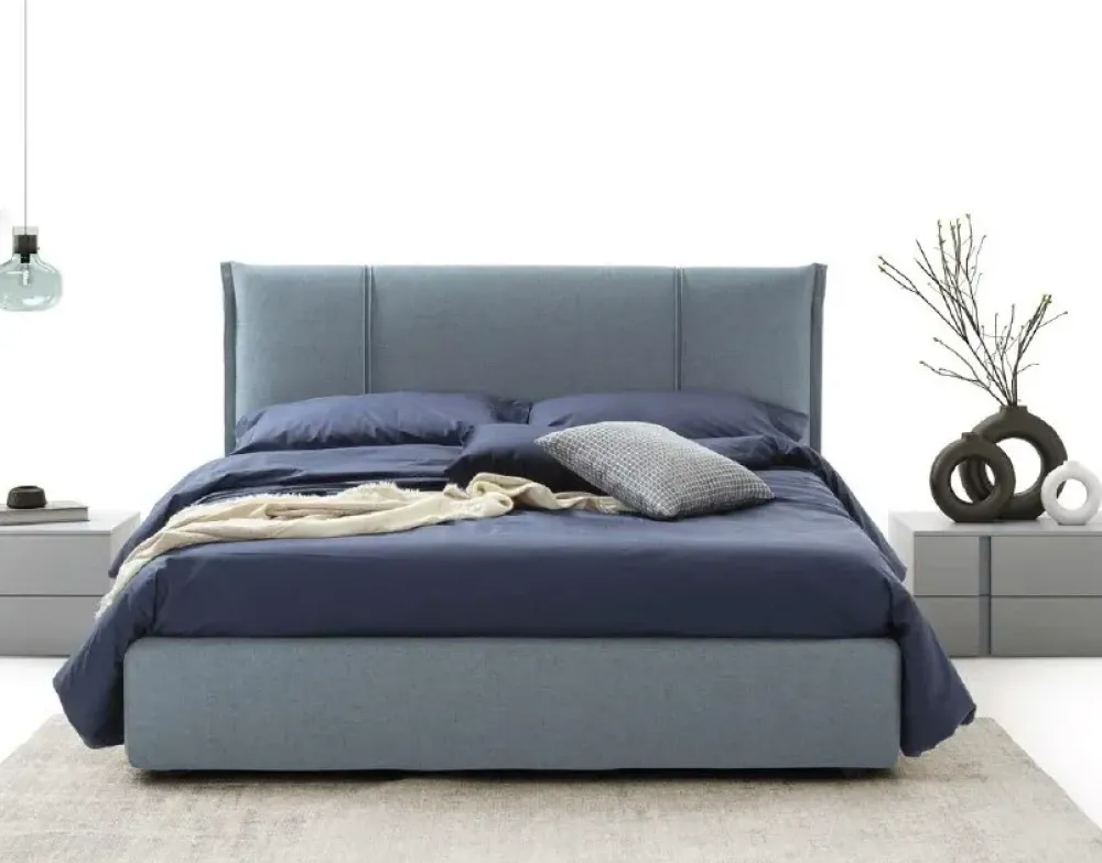 MIGUEL è un letto di semplice eleganza. La testata imbottita è caratterizzata da cuciture verticali e da una frappa tono su tono che corre sui bordi laterali. Realizzato nella sia versione fissa che con contenitore. La testata non è sfoderabile, il giroletto è sfoderabile. Rivestimento cat. EXTRA.