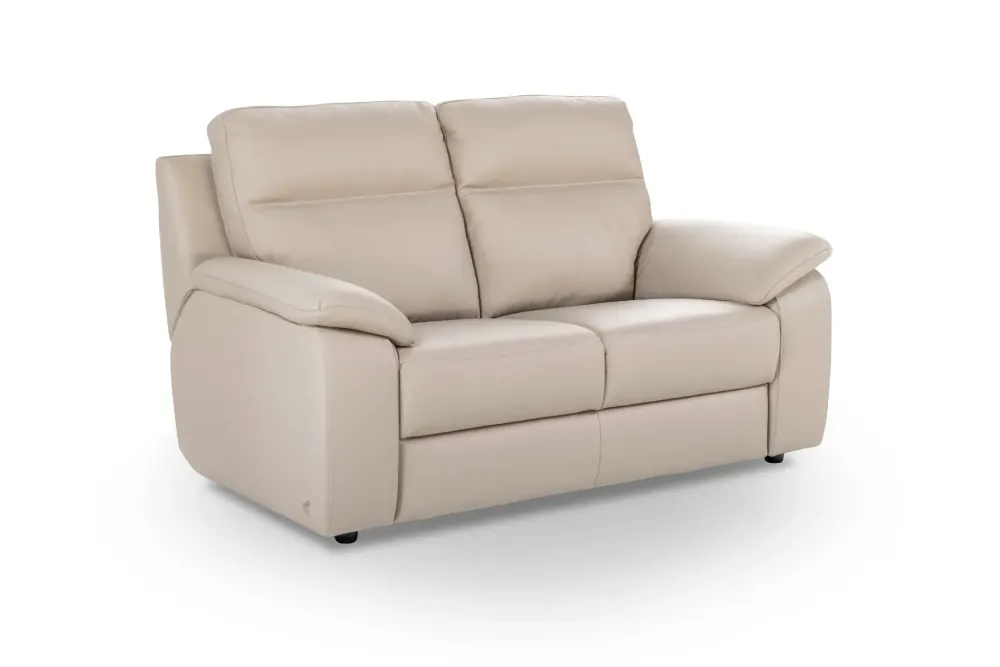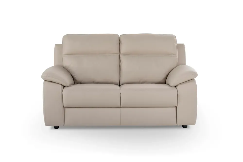 Il divano Mara a due posti è rivestito in pregiata pelle vera nel colore fango. La produzione artigianale è completamente italiana e si avvale di materiali di qualità, finiture accurate e contenuti resistenti-