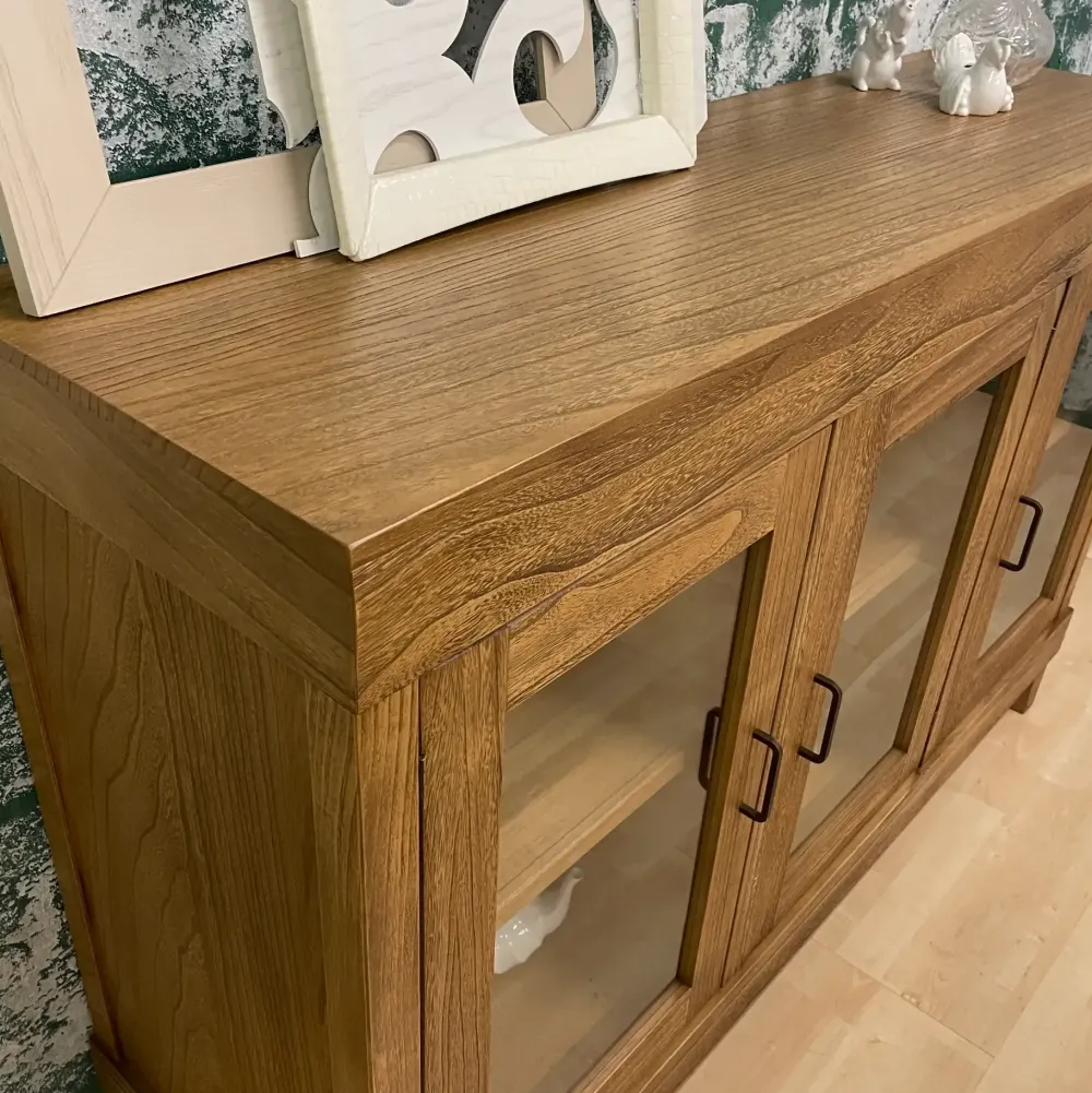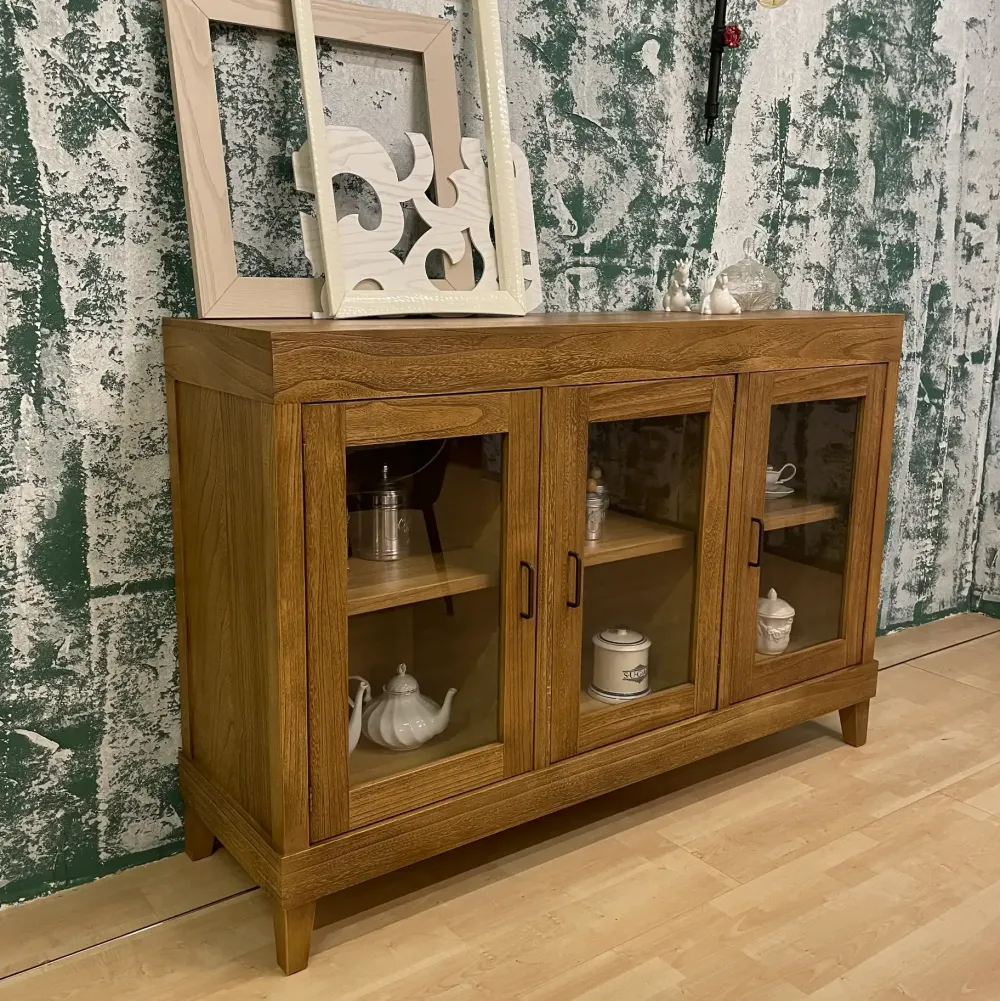 Madia Frida 3 ante con vetro , in legno massello spazzolato