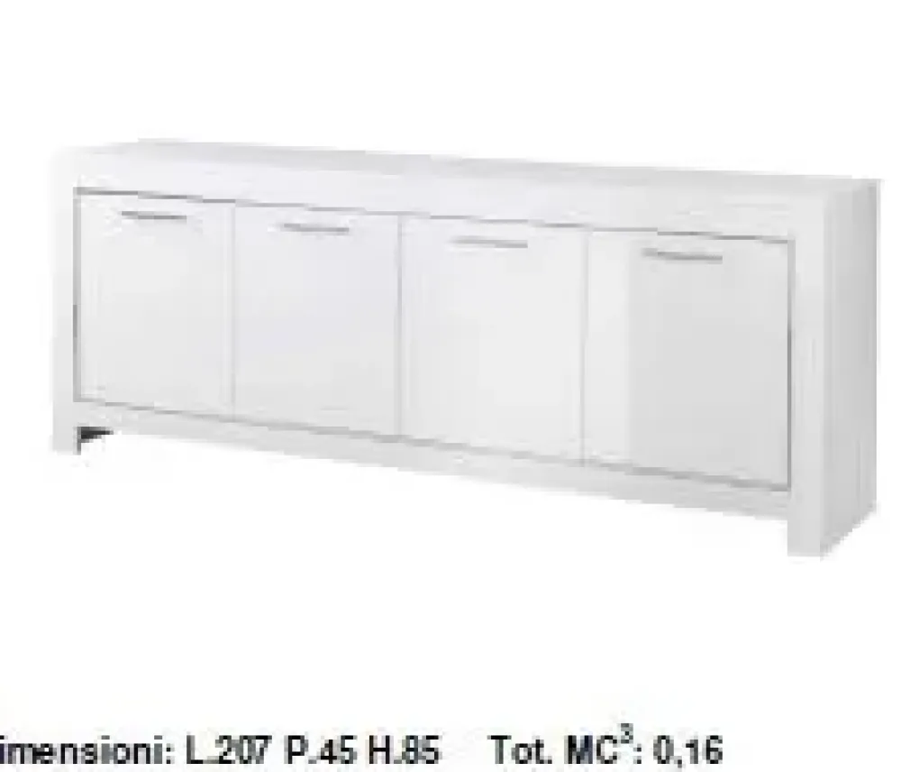 - Linee decise e materiali pregiati: scopri la madia in laccato lucido qui presente e potrai completare il soggiorno.