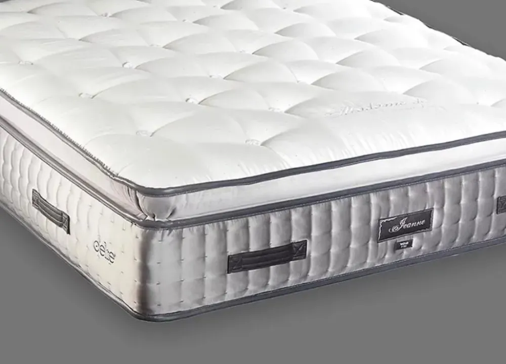 Materasso linea lusso D’elite modello Jeanne alto 35 cm con 5100 molle indipendenti. Materasso con confort mediamente rigido. Lo trovate nelle suite degli alberghi 4/5 stelle. Tessuto di rivestimento in fine Jacquard 500 gr/m2 trapuntato con fiocchi realizzato a mano.