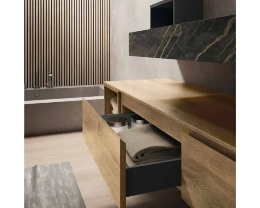 In bagno sono le finiture dei mobili che fanno la differenza, sia in fatto di praticità sia esteticamente. Il legno di questa proposta starà alla perfezione in locali di casa contemporanei e ti farà completare il bagno di casa coniugando perfettamente funzionalità e stile. Ogni abitazione ha il suo stile, il quale va ricalcato in ogni suo ambiente. In bagno passiamo ogni giorno il tempo dedicato a noi stessi. L’arredo bagno, dunque, deve rispecchiare il tuo gusto personale, oltre che essere funzionale. Se ami i pezzi di arredo per la sala da bagno in stile design, questa proposta fa al caso tuo. L’acquisto dei composizioni per la sala da bagno nel nostro portale presuppone un’attenta valutazione del prezzo della consegna, che cambierà a seconda della tipologia di mobile e alla strada da percorrere: trasporto incluso entro 100 Km per questa soluzione di elevata qualità.