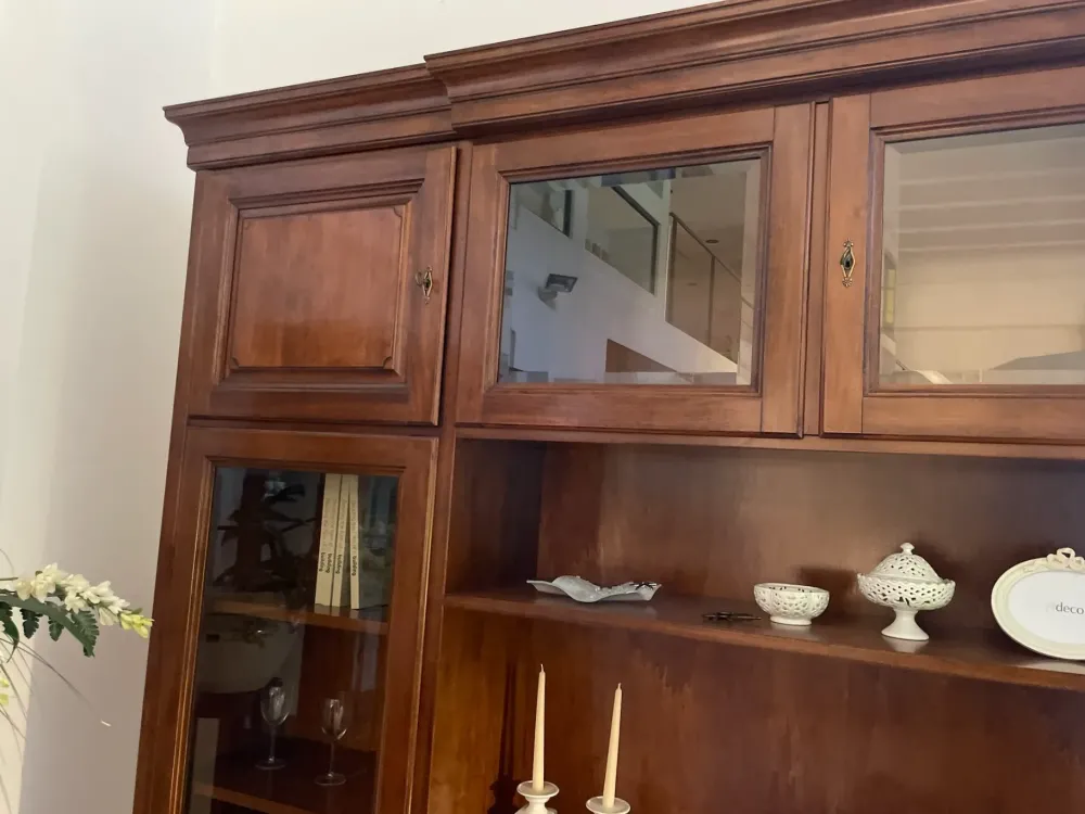 I mobili ed elementi accessori per il soggiorno, come le pareti attrezzate, sono essenziali sia dal punto di vista estetico che per quanto concerne la funzionalità dell’ambiente in cui sono posizionati. Il modello Parete attrezzata classica edera nella fotografia sarà un piano d’appoggio ideale per molteplici oggetti, ma potrà anche essere un mobile contenitore o un porta tv. Scopri di più su questo modello: la qualità Artigianale ti sta aspettando in offerta.