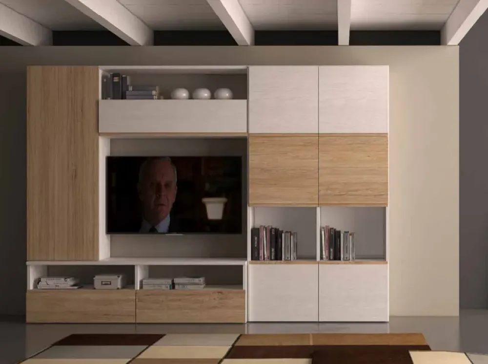 - I mobili ed elementi accessori per la zona giorno consentono di customizzare lo spazio dando vita a peculiari atmosfere: se desideri un soggiorno moderni, la parete attrezzata nella fotografia è l’ideale.