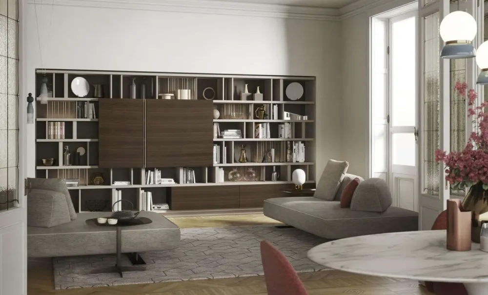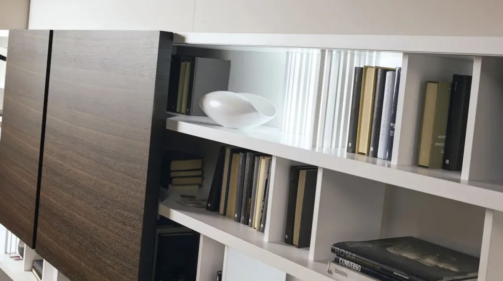 Sono molteplici le soluzioni componibili di ” LINEA IN ARREDAMENTI ” dal nuovo design e finiture di colori vari per arredare ogni ambiente e renderlo accogliente e armonioso. Un mobile libreria che si integra in ogni ambiente, particolare la predisposizione del vano per inserimento TV, nascosto da 2 antine Della stessa collezione sono disponibili: – tavoli fissi e allungabili – sedie – credenze – madie – soggiorni completi E’ possibile modificare: – misure e componibilità della composizione – finiture con colori diversi – realizzazione anche “su misura” Scheda informativa del prodotto di qualità MADE IN ITALY – struttura in legno impiallacciato con lastra di legno – laccatura opaca SETASIL antigraffio
