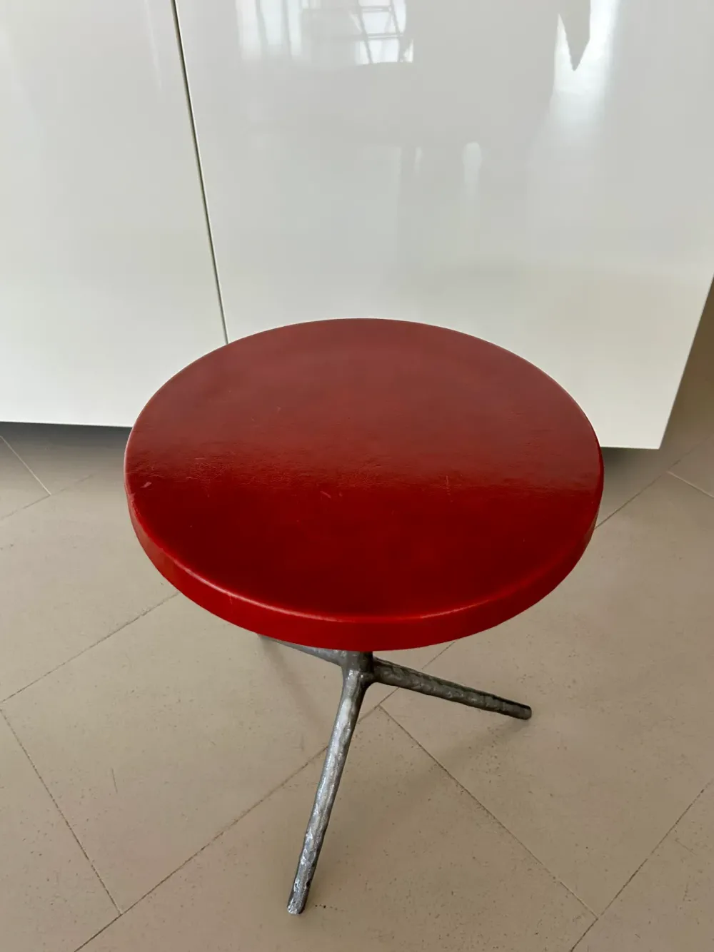 Tavolino modello Vik diam.35 H.43cm fin.pelle Tuscany Follonica e struttura fin.Alluminio.