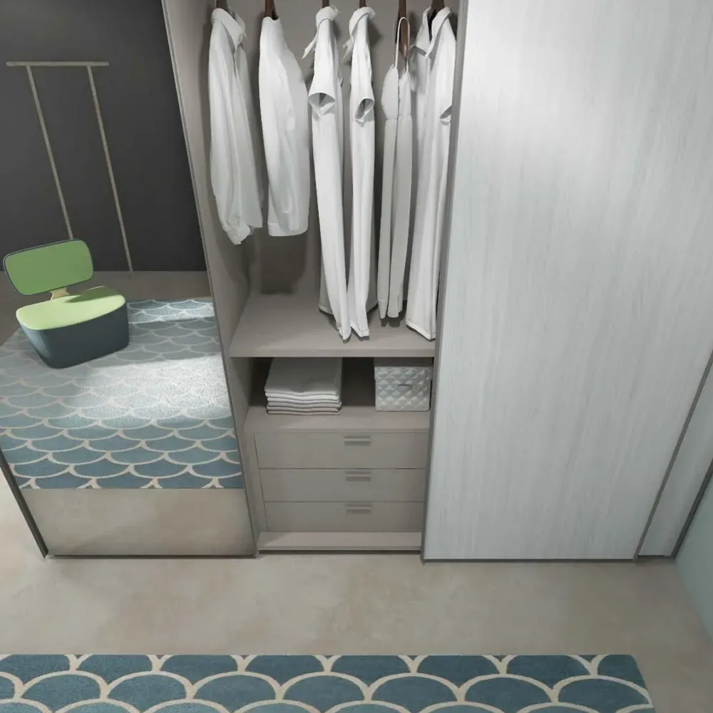 - Durante la scelta di armadiature e cabine armadio per la zona notte, si rischia spesso di rinunciare all’aspetto estetico piuttosto che pratico per problematiche abitative peculiari o limiti di budget. L’armadio può essere ad ante battenti, ad ante scorrevoli o a soffietto, o può addirittura avere una forma a cabina: la soluzione qui visibile è con ante scorrevoli ed è ideale per rendere gli ambienti agibili e confortevoli.