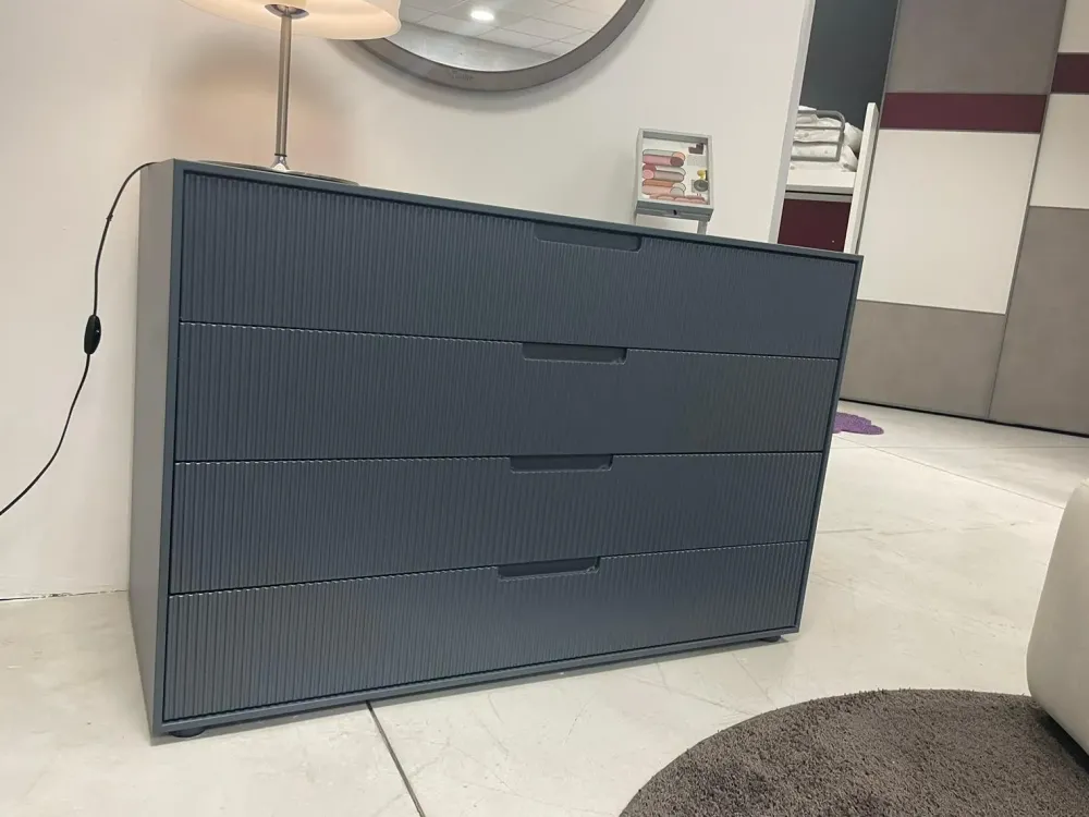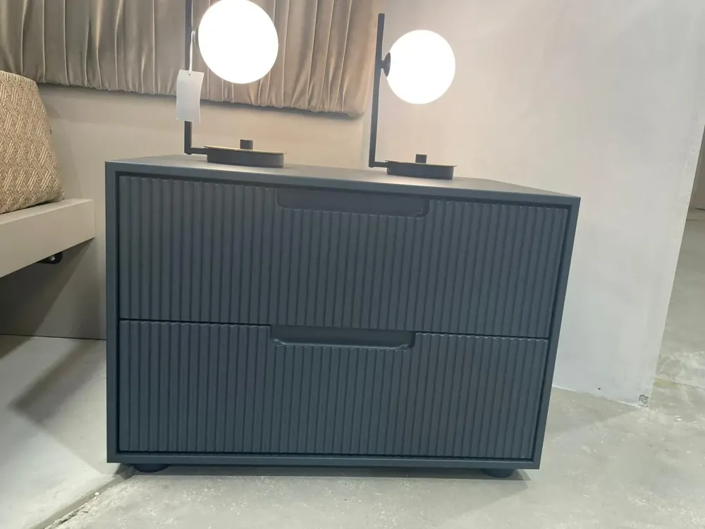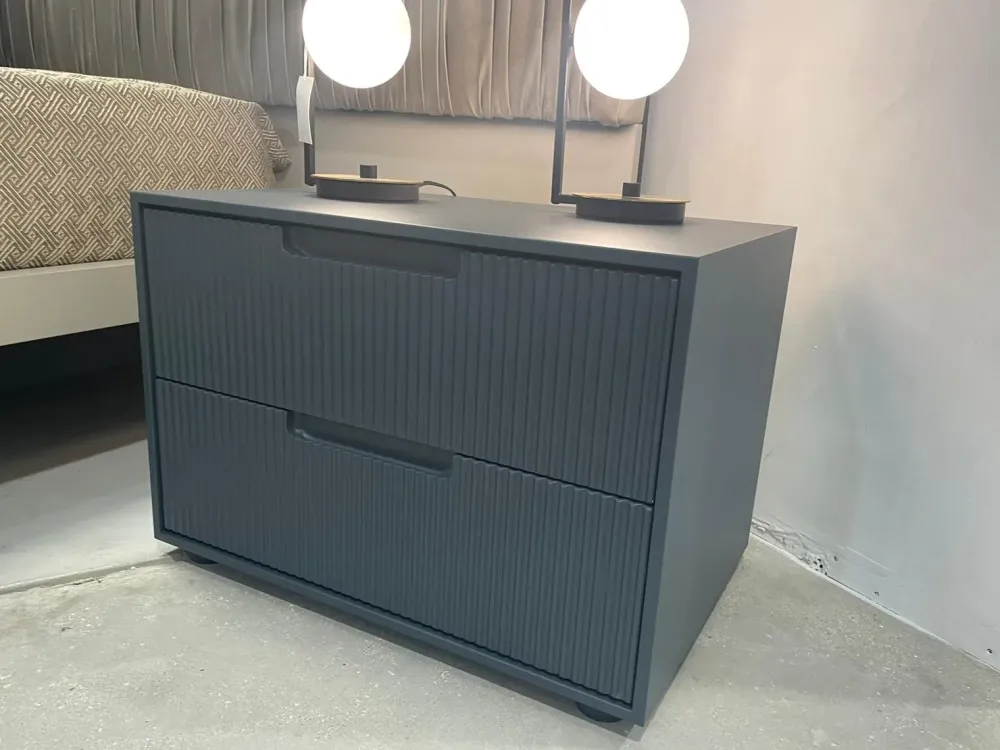 Se desideri comodini in laccato opaco per la tua zona notte, il modello Gruppo notte grecato in foto sarà l’ideale.