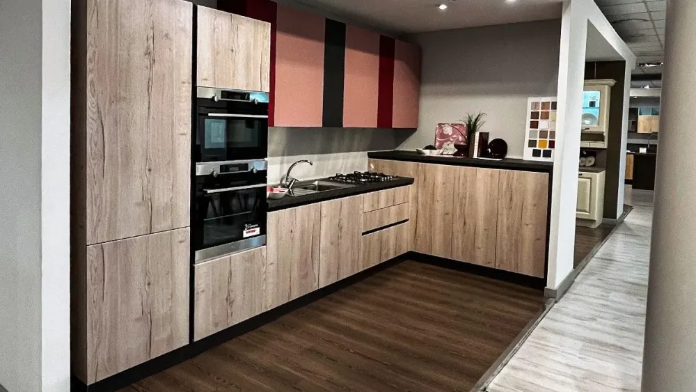 - Con lo scopo di arricchire lo stile dell’ambiente, gioca un ruolo di primaria importanza il top cucina: qui incluso nel costo, c’è un piano di lavoro in laminato perfetto per mantenersi negli anni pur custodendo le sue caratteristiche peculiari.