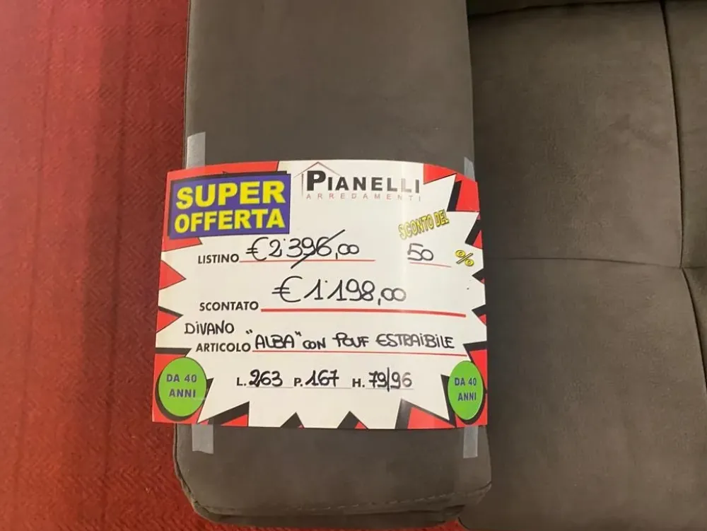 - Se vuoi comprare questo imbottito nel nostro Outlet, dovrai prendere in considerazione pure il prezzo della consegna: trasporto incluso entro 100 Km per quest’offerta.