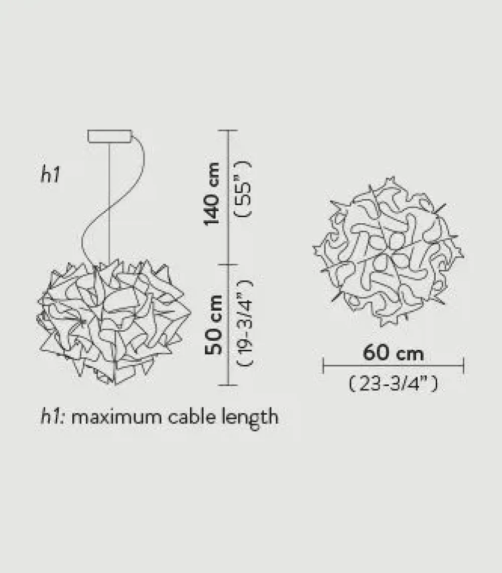 TAGLIA: Ø 60 cm x h. 50 cm / Ø 23-3/4” x h. 19-3/4” maximum cable length: 140 cm / 55”
