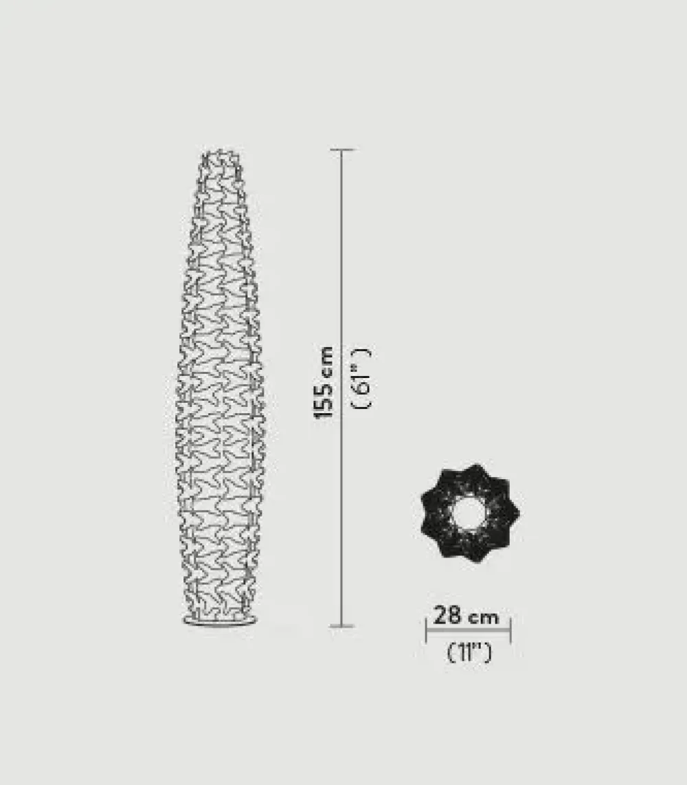 - Stile design: La Cactus Prisma Floor Lamp XL è un vero e proprio oggetto di design. Il suo design unico e innovativo la rende un elemento d’arredo di grande impatto visivo, in grado di arricchire qualsiasi ambiente con stile ed eleganza.