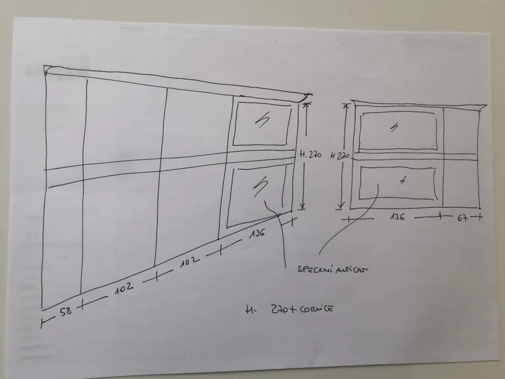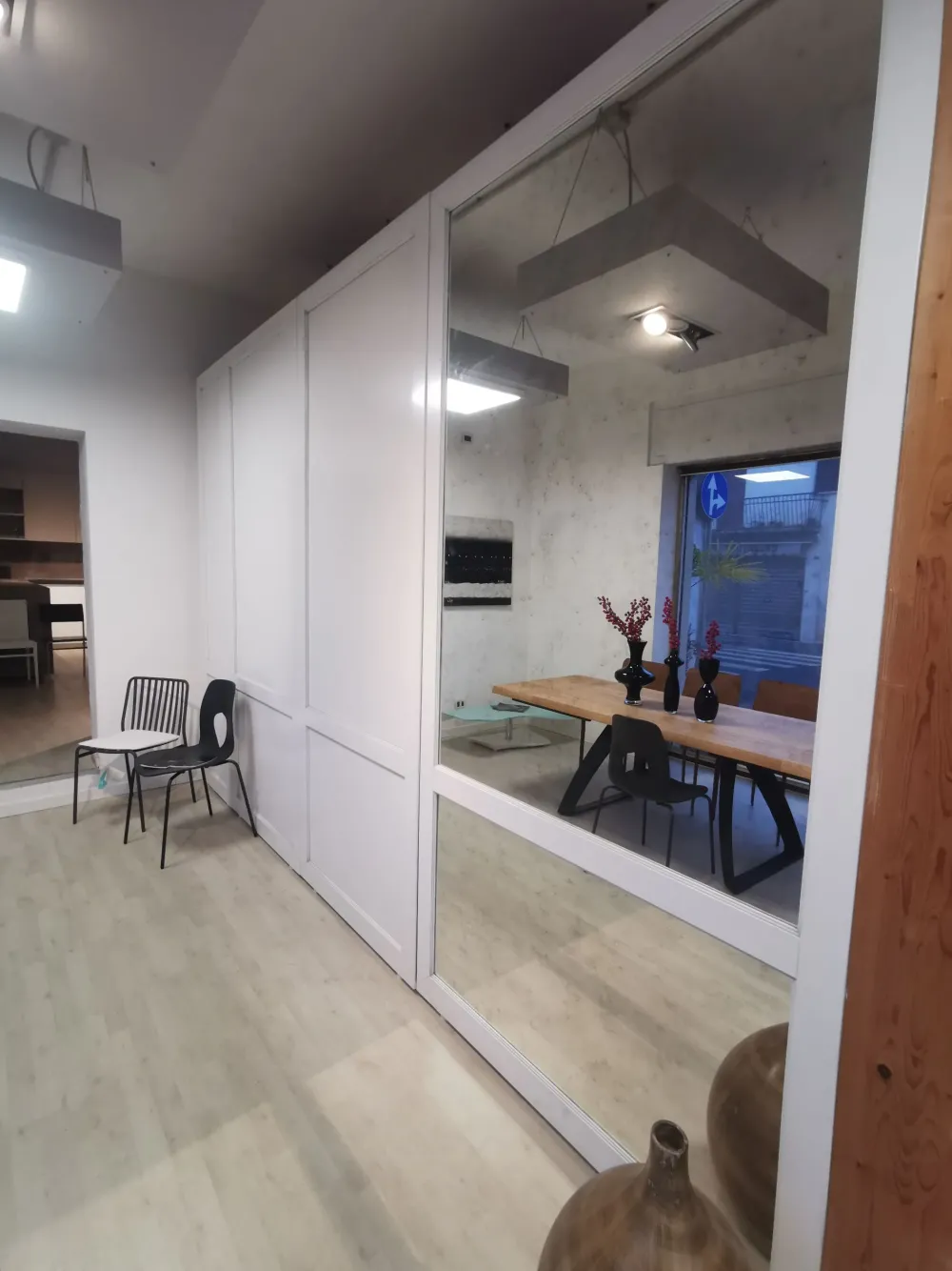 Pannelli muro uso ufficio ( o altra stanza) di altissima qualità marca Aster Cucine modello Opera Hall laccati bianchi opachi con specchi anticati e decori vari e con cornici.