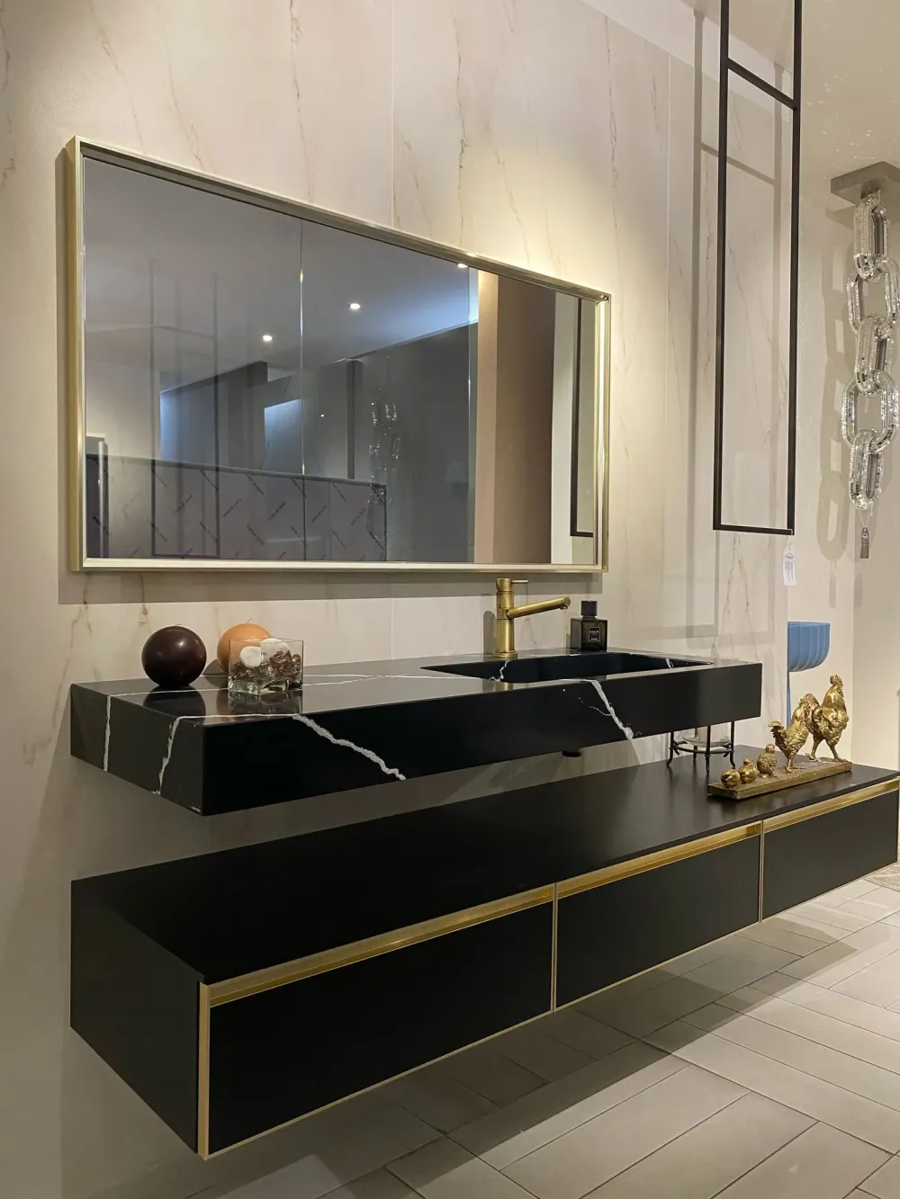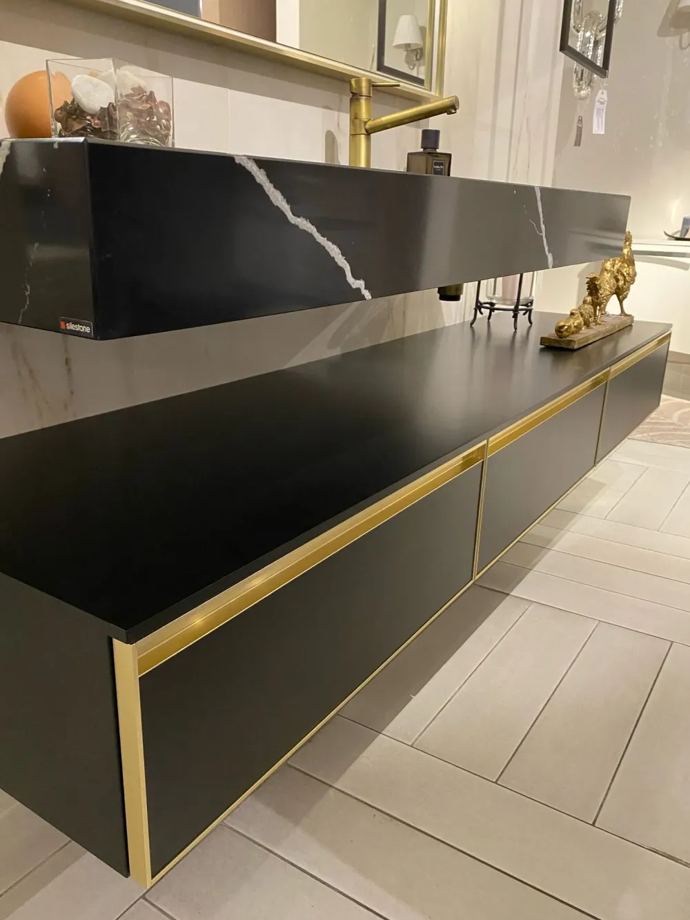 03 BASI SOSPESE LACCATO NERO OPACO CON DETTAGLI ORO – L 70 x P 50 x H 24.5 ( TOT. 210 )