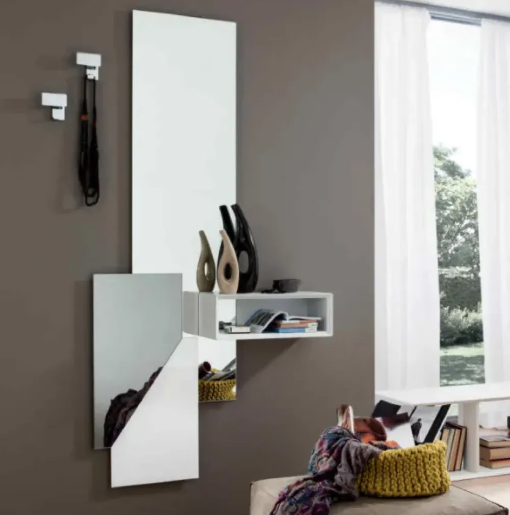 ingresso specchiera di design con pensile vano a giorno , specchio e bianco