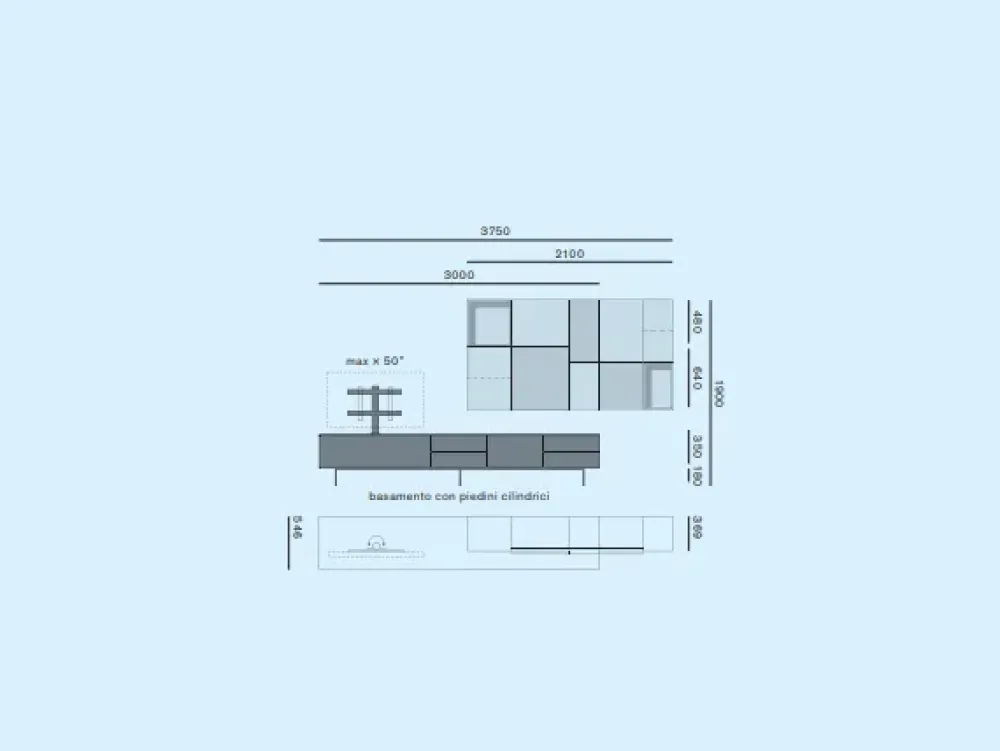 - La multifunzionale e ampio parete attrezzata nell’immagine è un mobile a terra che appartiene alla nostra serie di mobili ed elementi accessori di Sangiacomo, leader del settore.