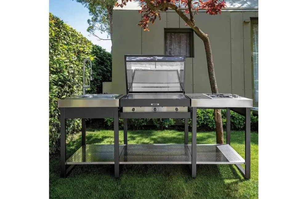 Cucina componibile comprensiva di : -MODULO CON LAVELLO L.1000 SINISTRO -MODULO BARBECUE A GAS 750 FO -KIT SUPPORTO BARBECUE -Modulo 1000 cucina a gas -APPENDERIA