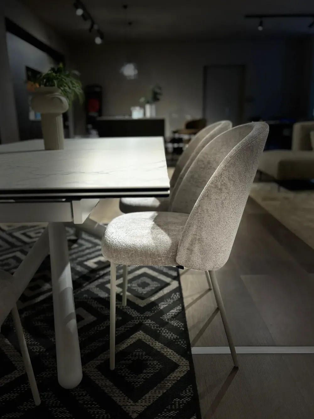 Tuka Mid è una sedia che rappresenta una via di mezzo tra la versione senza braccioli e quella a poltroncina. Le gambe sono realizzate in metallo finitura canapa opaco P151, tessuto Enil colorazione Sabbia SYT, aggiungendo un tocco moderno al design complessivo. Grazie alla sua versatilità e al mix di materiali, questa sedia offre un’opzione versatile per arredare la tua casa con stile e comfort.