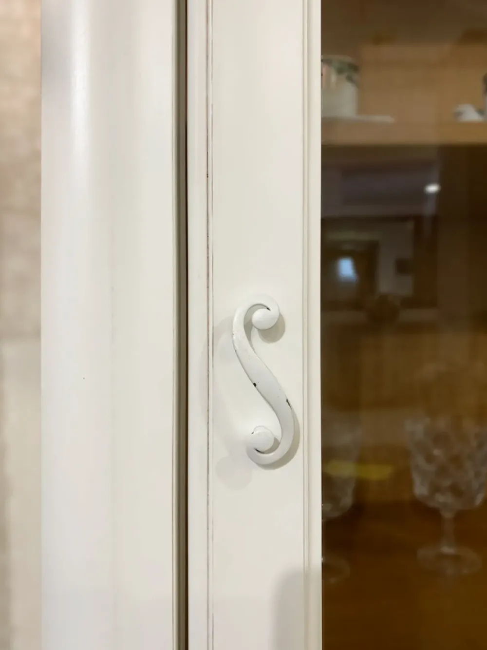 Cristalliera 2 ante scorrevoli, in legno laccato Bianco Vissuto.