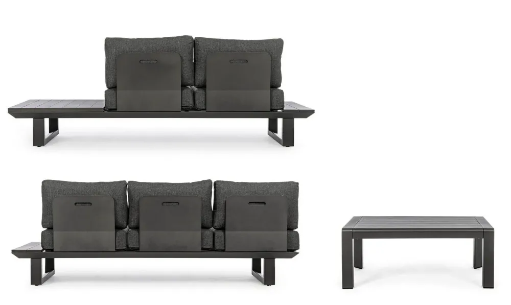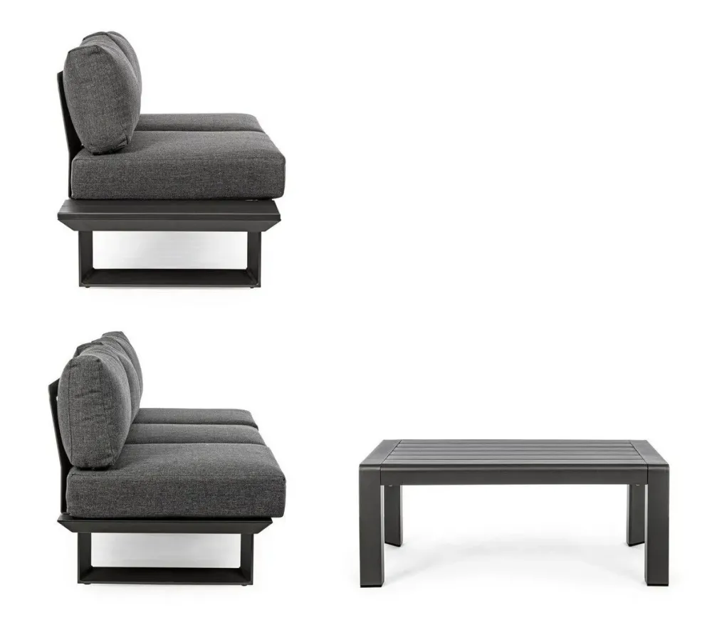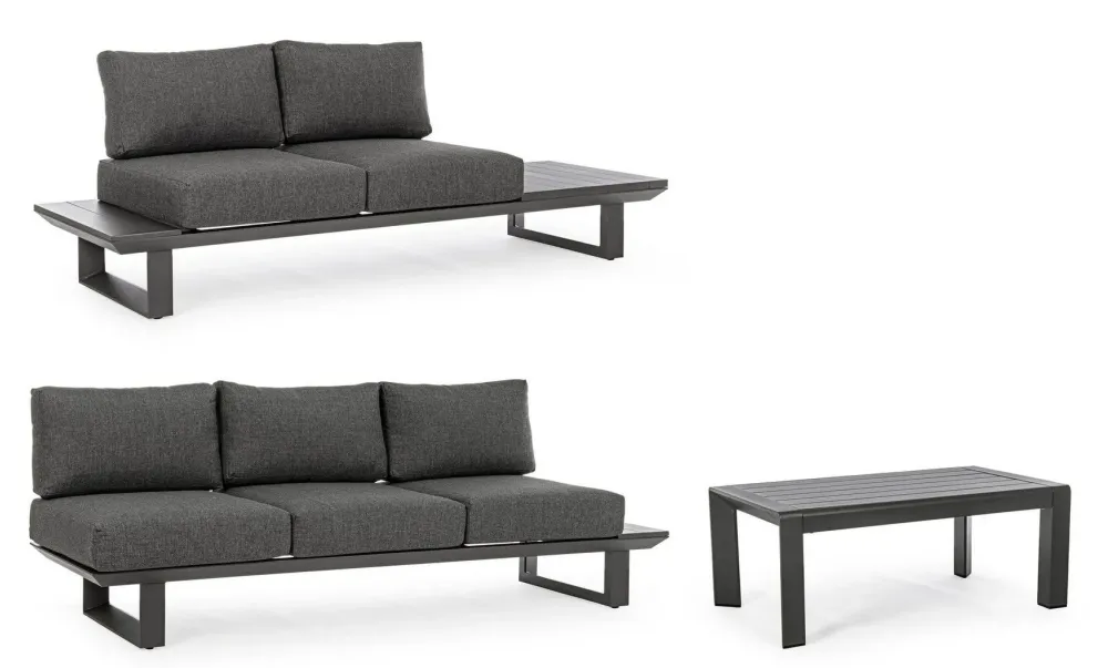 Set salotto angolare Konnor di Bizzotto con cuscini. Struttura in alluminio, verniciato a polvere (poliestere). cuscini sfoderabili con tessuto olefin (100% polipropilene). Colori disponibili: bianco o antracite. Il prezzo si riferisce alla composizione in foto completa di tavolino. Ci troviamo in Via Marcora 2, Graffignana (LO). Tel. 037188662/ 3339992958. E-mail: [email protected]