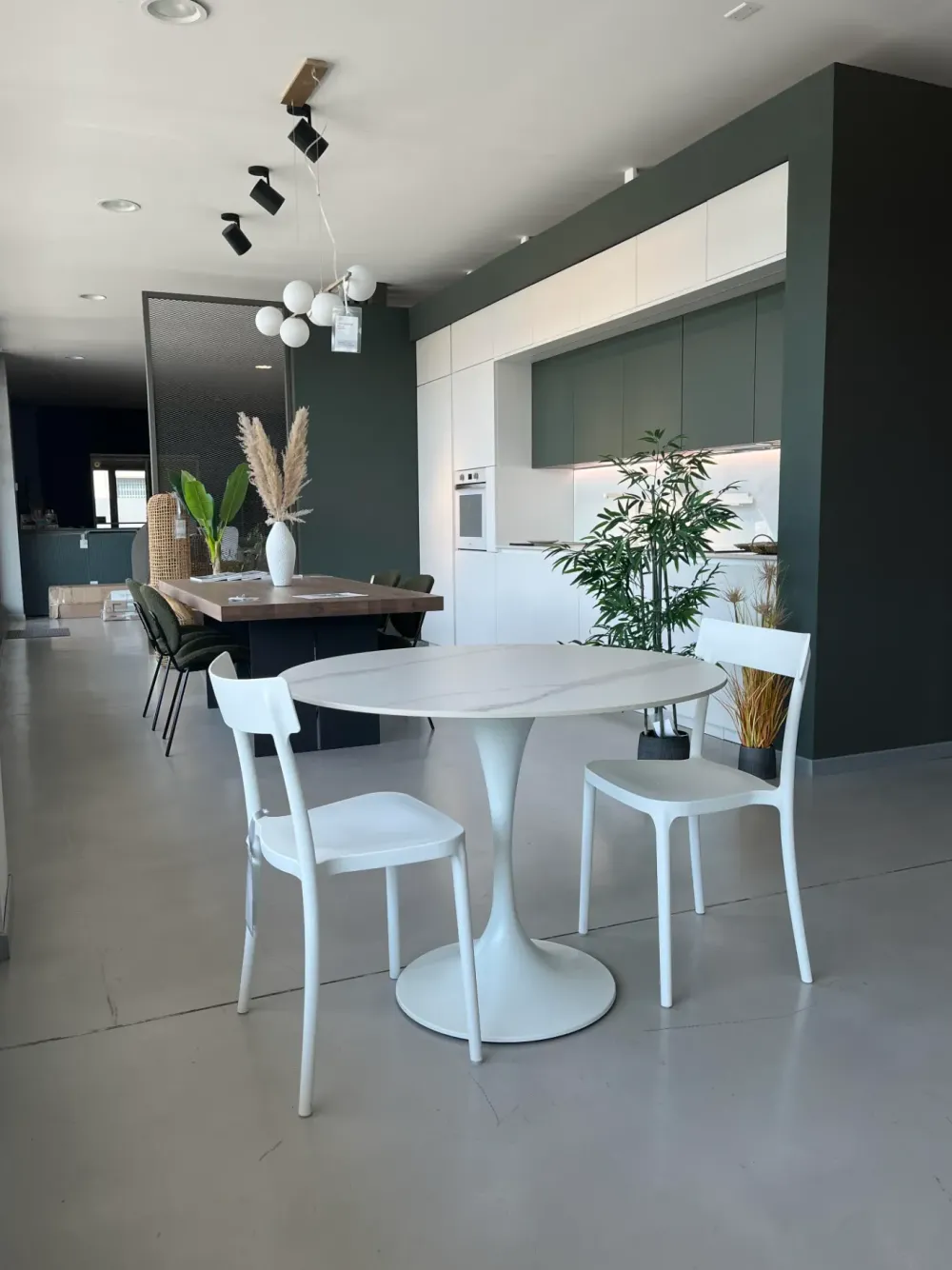 Questo tavolo rotondo conquista al primo sguardo con il suo design essenziale e sofisticato. Il piano effetto marmo regala luminosità e carattere, mentre la base centrale assicura stabilità e comfort. Ideale per chi cerca una soluzione compatta ma d impatto, si integra con naturalezza in ogni ambiente, portando con sé un tocco distintivo che non passa inosservato.