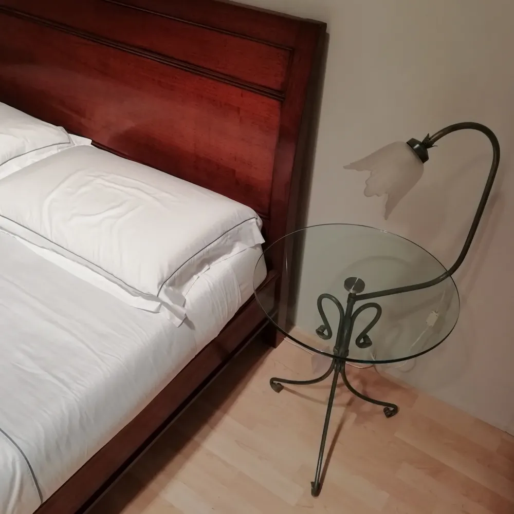 Possibilità di ordinare anche il secondo comodino in legno al posto di quello in vetro, con prezzo da comunicare.