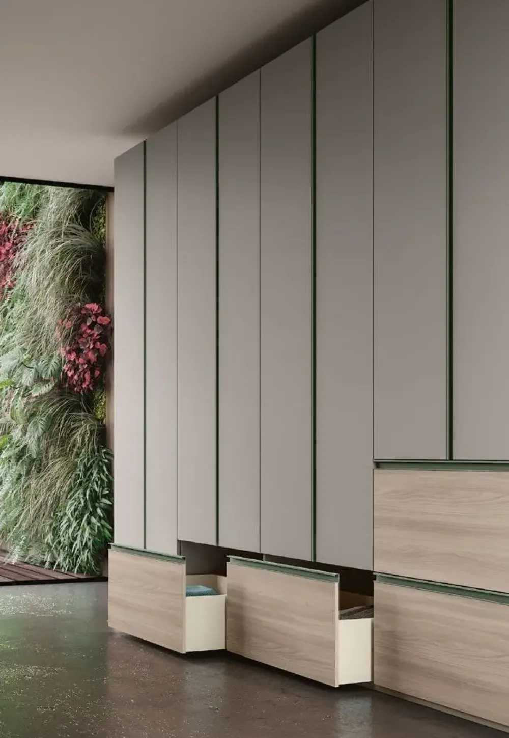 Composizione proposta nelle finiture grigio seta, olmo natura e agave.