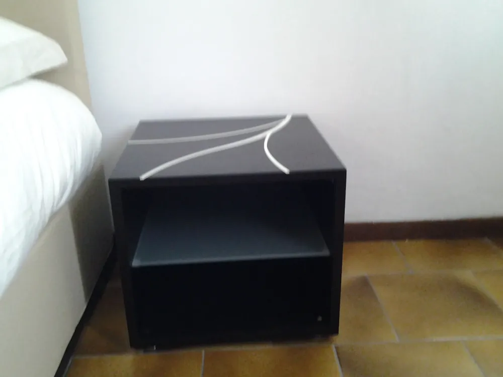 Entrambi gli articoli presentanoun intarsio superiore amovibile che consente il passaggio di cavi elettrici relativi ad eventuali lampde in appoggio