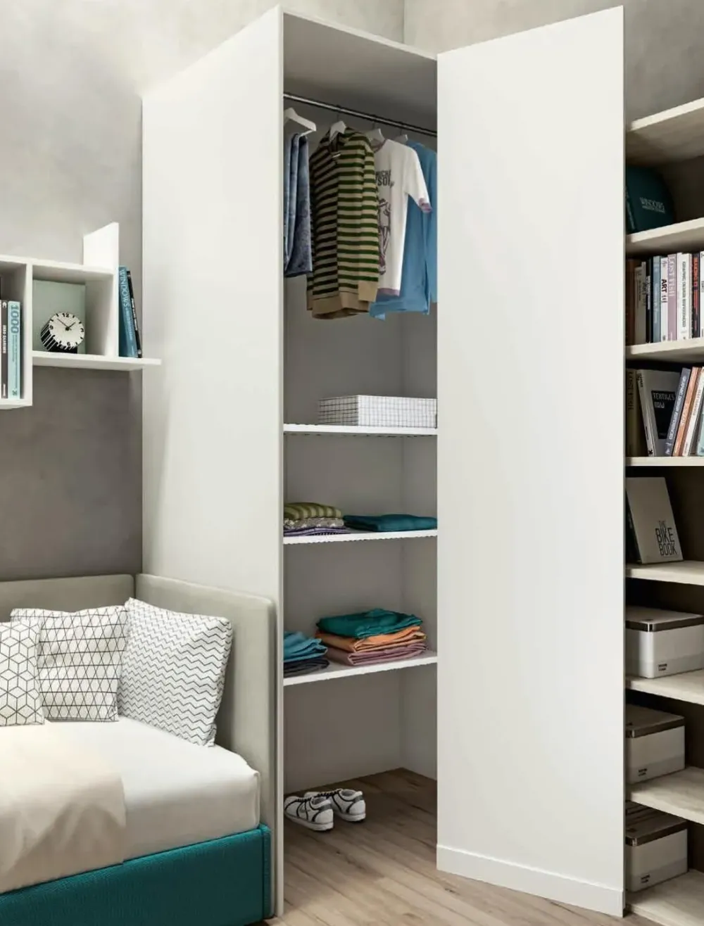 Per creare le atmosfere ideali per lo spazio junior, opta per camerette dalle tonalità più accese e dalle linee sinuose, in modo che l’ambiente possa trasmettere vitalità e serenità; il marchio ha optato per un materiale tanto pregiato quanto resistente per questa cameretta 125, vale a dire il laccato opaco, tale da completare l’estetica della stanza definendone altresì le doti pratiche.