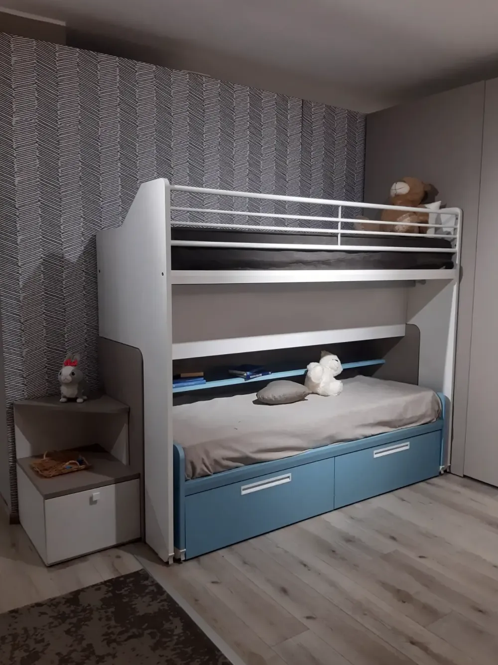 - Nella camera dei bambini, non solo armadi e comò offrono un plurifunzionale e capiente spazio per la sistemazione delle proprie cose, ma concorrono altresì i cassettoni estraibili: difatti, il letto incluso nel prezzo è particolarmente contenitivo e funzionale.