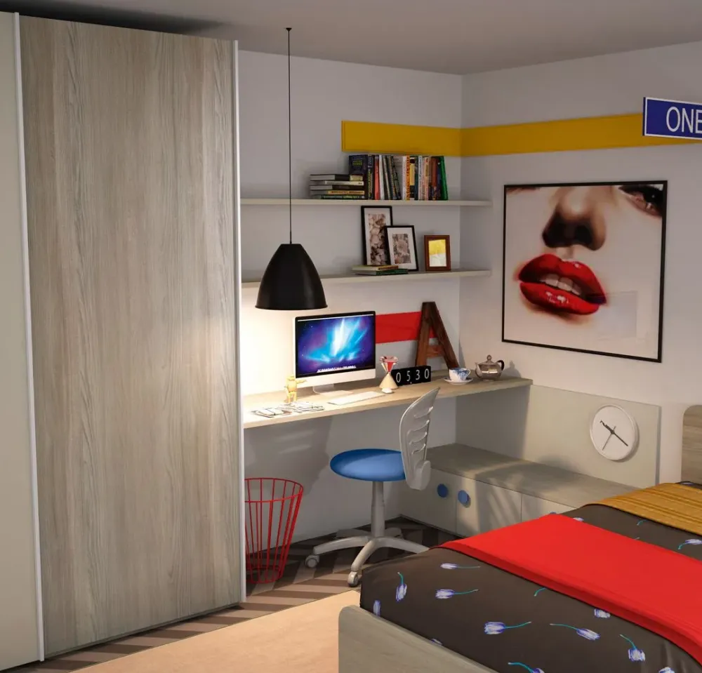 Tra i materiali di prima scelta che il brand ha scelto per la sua linea di arredi per la zona notte dei giovani, non può mancare per certo il laminato materico con cui questo modello Cameretta moderna 4 è stato costruito, materiale pensato per rispondere alle necessità pratiche ed estetiche individuali; design unico, resistenza negli anni e solidità strutturale sono assicurati in questa proposta di qualità eccellente, in quanto è costruita seguendo una precisa linea stilistica.