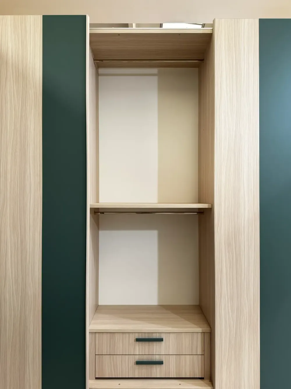 La Cameretta Golf G3 di Colombini interpreta al meglio le necessità della vita quotidiana di ogni bambino o teenager. Si compone di un letto da una piazza e mezza modello Poldo Soft con giroletto Sigma e piedini Twig in finitura Noce e un comodino con due cassetti, maniglie Pul e piedini Delta. La Scrivania Fly con libreria Infinity sospesa dotata di ante push-pull, crea un angolo studio perfetto con la comoda seduta imbottita Woody. L armadio con anta scorrevole Riviera non è solo capiente ma, grazie alle finiture noce e verde alpi, rende l ambiente dinamico e vivace.
