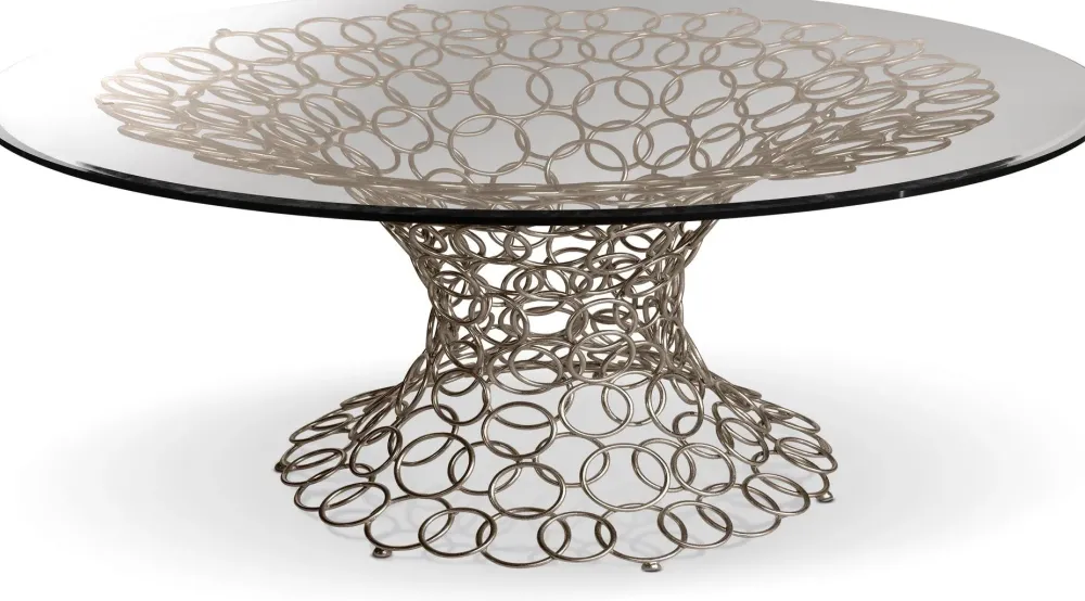 Attraverso un lento processo di precisione, studiato appositamente, i cerchi metallici diventano la base del tavolo.