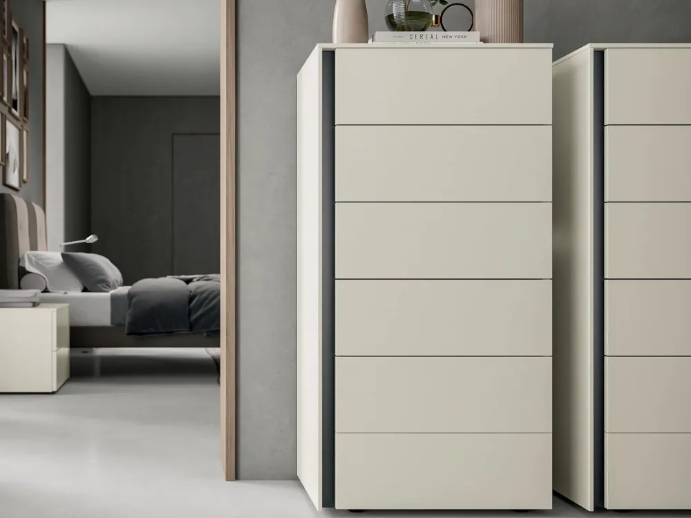 Le cassettiere, con le armadiature e ai letti, sono gli arredi più fondamentali in ogni zona notte, infatti è tanto importante sceglierli a seconda delle necessità pratiche ed estetiche: il modello Arco nell’immagine, per esempio, è realizzato in laminato. Arreda alla perfezione una zona notte dalle linee design: con la cassettiera Arco potrai garantirti qualità e un’estetica raffinata.