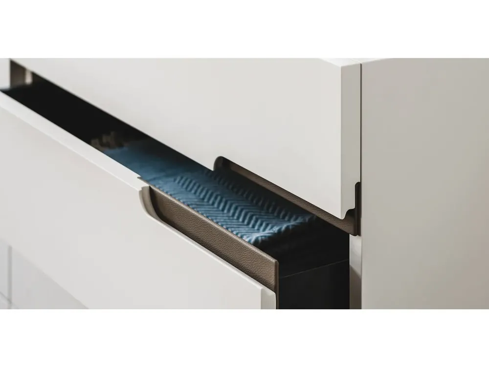 -Comò a 4/8 cassetti con struttura e frontali in legno goffrato graphite (GF69), oyster (GF50) o in noce Canaletto (NC) o rovere bruciato (RB).