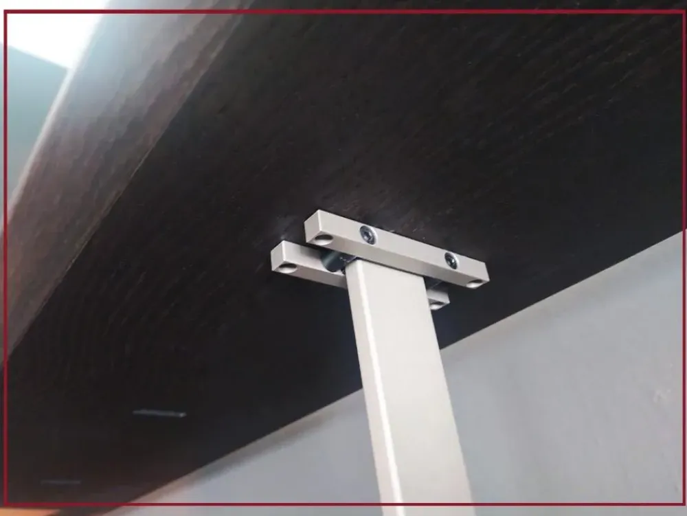 Montanti e staffe in acciaio verniciato goffrato titanio (GFM11), bronzo (GFM18), graphite (GFM69), bianco (GFM71) o nero (GFM73)