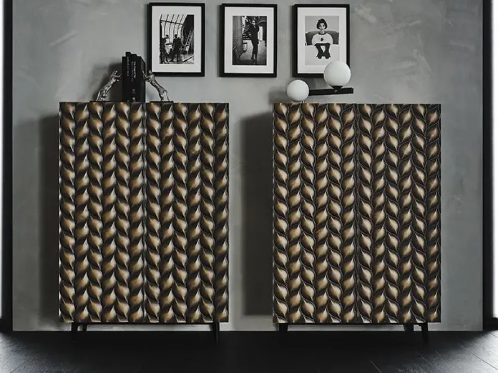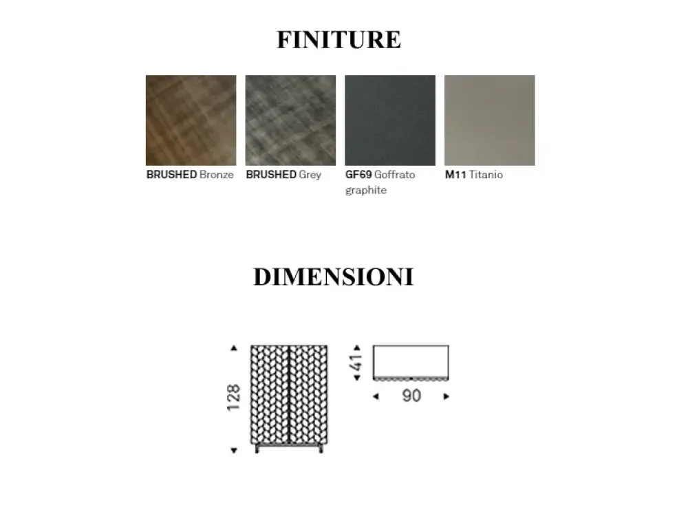 Madia contenitore in legno goffrato graphite (GF69), titanio (M11), Brushed Bronze o Brushed Grey.