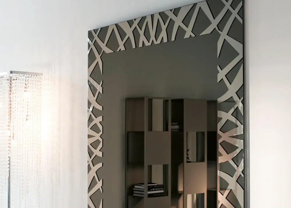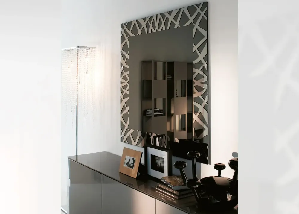 Specchio da parete in cristallo specchiato o specchiato fumé.