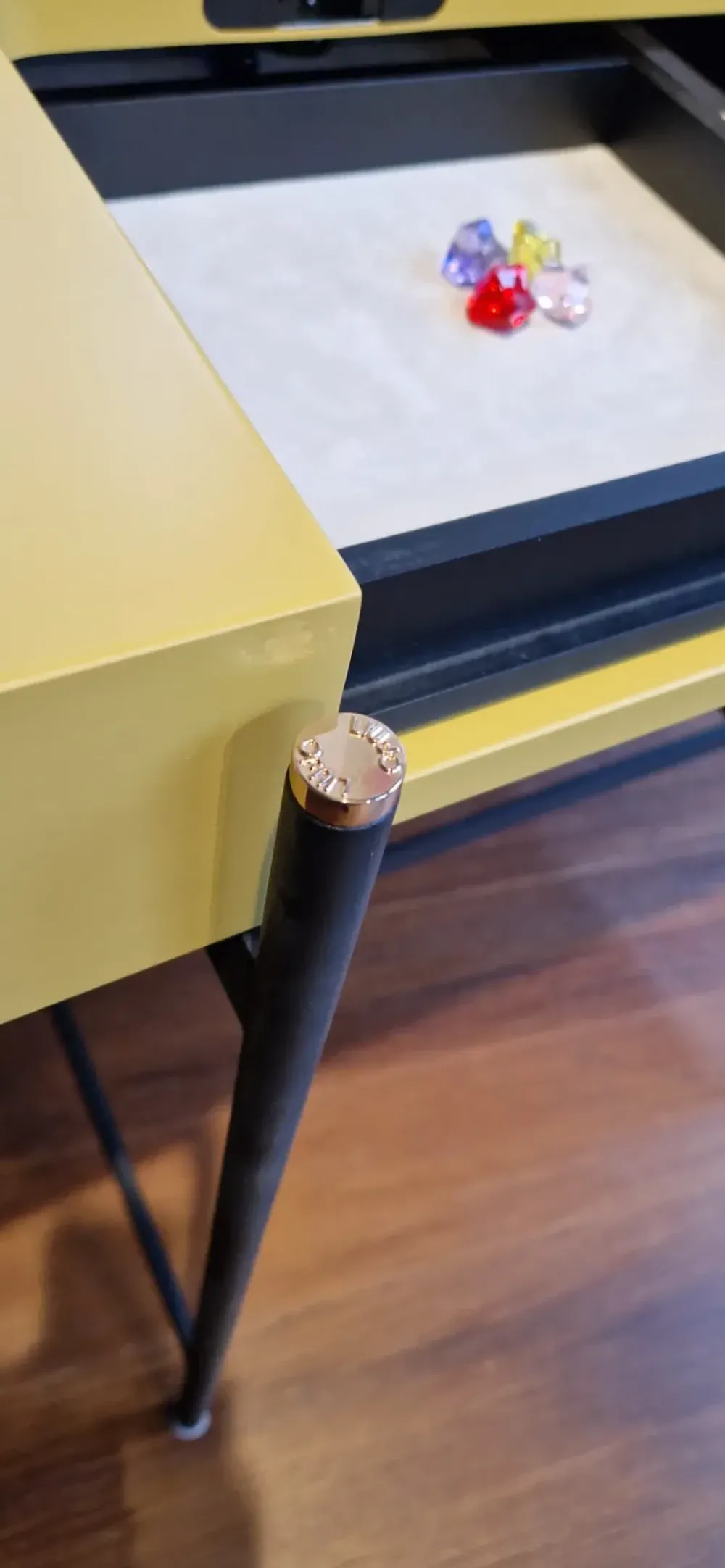 Il Make-Up Set Caillou di cm 124L x 76/135H x 53P rappresenta lessenza di un design moderno che fonde funzionalità e raffinatezza. Questo mobile non è solo un semplice complemento per la zona notte, ma un vero e proprio oggetto del desiderio per chiunque apprezzi lo stile e la praticità. Un elemento pop, trasformabile, che può essere utilizzato non solo come make-up set, ma anche come scrivania o consolle, rendendolo un pezzo versatile e ideale per ambienti contemporanei. La sua estetica unica, unita allelevata qualità dei materiali e allattenzione ai dettagli, lo rendono un pezzo essenziale in qualsiasi casa moderna. Versione in finizione laccato opaco Senape