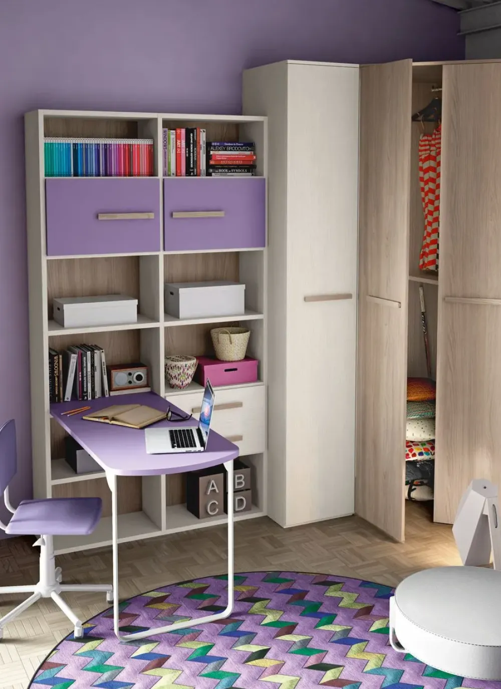 Cameretta nuova Mottes mobili, un letto compreso di rete, comodino sospeso a un’anta, cubi e mensole porta oggetti. Armadiatura a 5 ante con cabina armadio con ripiano e bastone appendiabiti compresi. Troviamo poi la zona scrivania con la base in metallo, e libreria a giorno con 4 cassetti . Le misure sono: parete frontale 292,5 cm, parete di destra 340,8 cm. Altezza totale 258 cm. Lunghezza totale letto 197,5 cm, scrivania 146 cm. I colori che predominano questa cameretta come in foto sono il lilla, l’olmo e il frassino sbiancato, ma si possono cambiare a proprio piacimento senza variazioni di prezzo. Il prezzo è di 3100 euro, Iva e consegna compresa. I tempi di consegna sono di circa 20//30 giorni lavorativi. Per le consegne in Europa il servizio è su richiesta. Per qualsiasi informazione, preventivo e montaggio contattateci.
