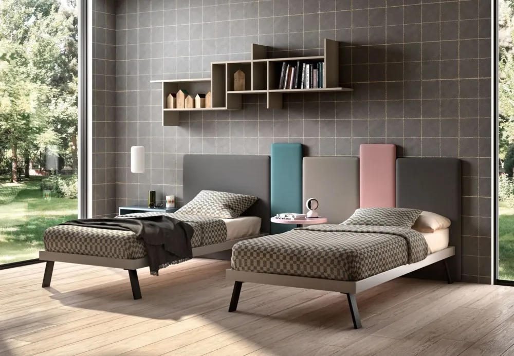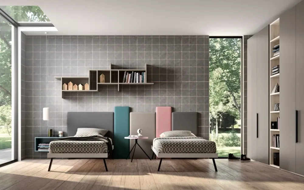 - Tipologia con letti a terra: la cameretta Room114 è dotata di letti a terra, dando un look moderno e contemporaneo alla stanza.