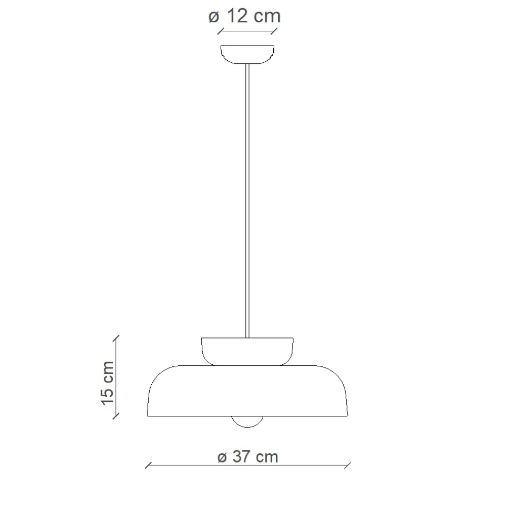 Dimensioni: Diametro 37 cm, Altezza corpo 15 cm, Altezza totale max 120 cm.
