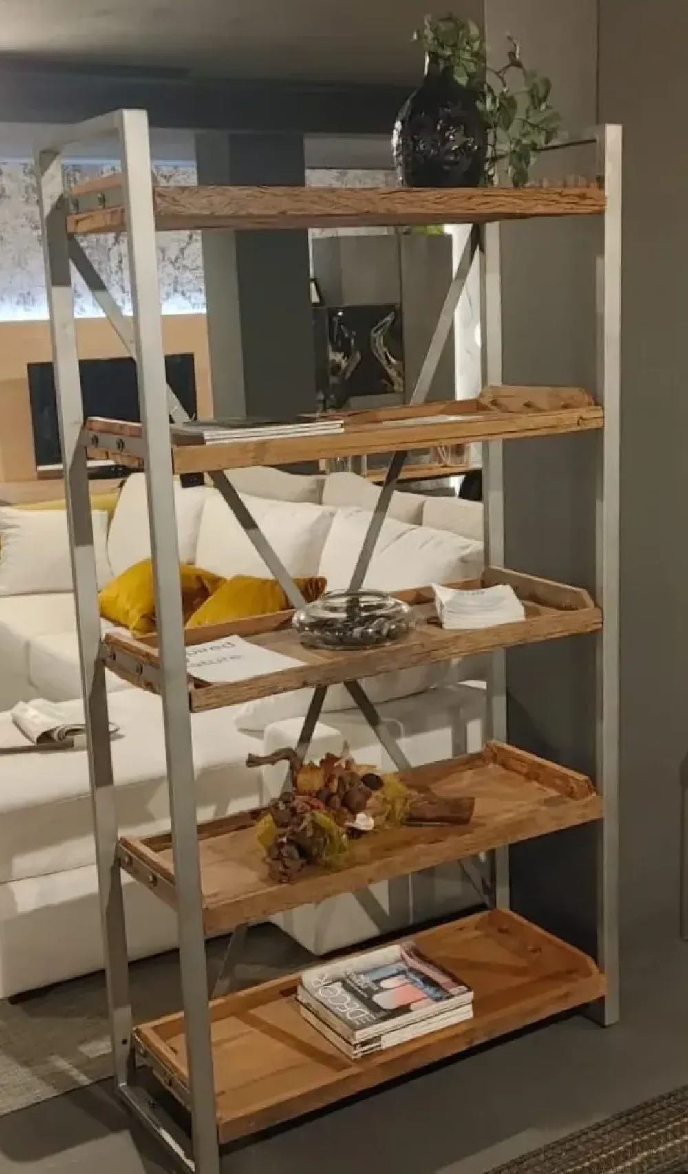 Libreria in legno massello riciclato di Saal e ferro.