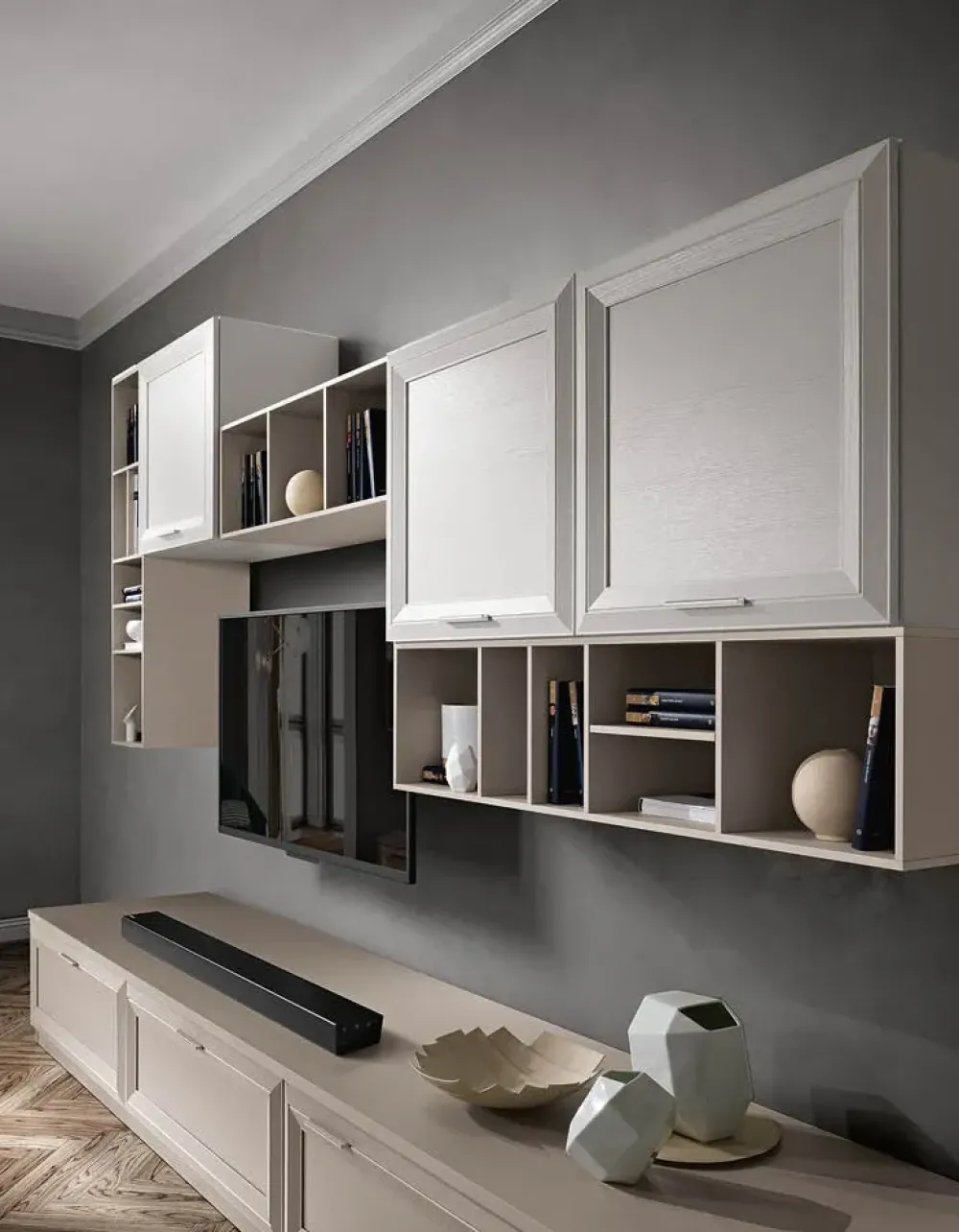Se sei interessato alle composizioni d’arredo in stile design, prediligi la parete attrezzata nell’immagine e potrai impreziosire un living pratico e dinamico seguendo una certa linea stilistica.