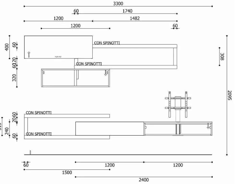 Scheda tecnica della parete attrezzata Lampo
