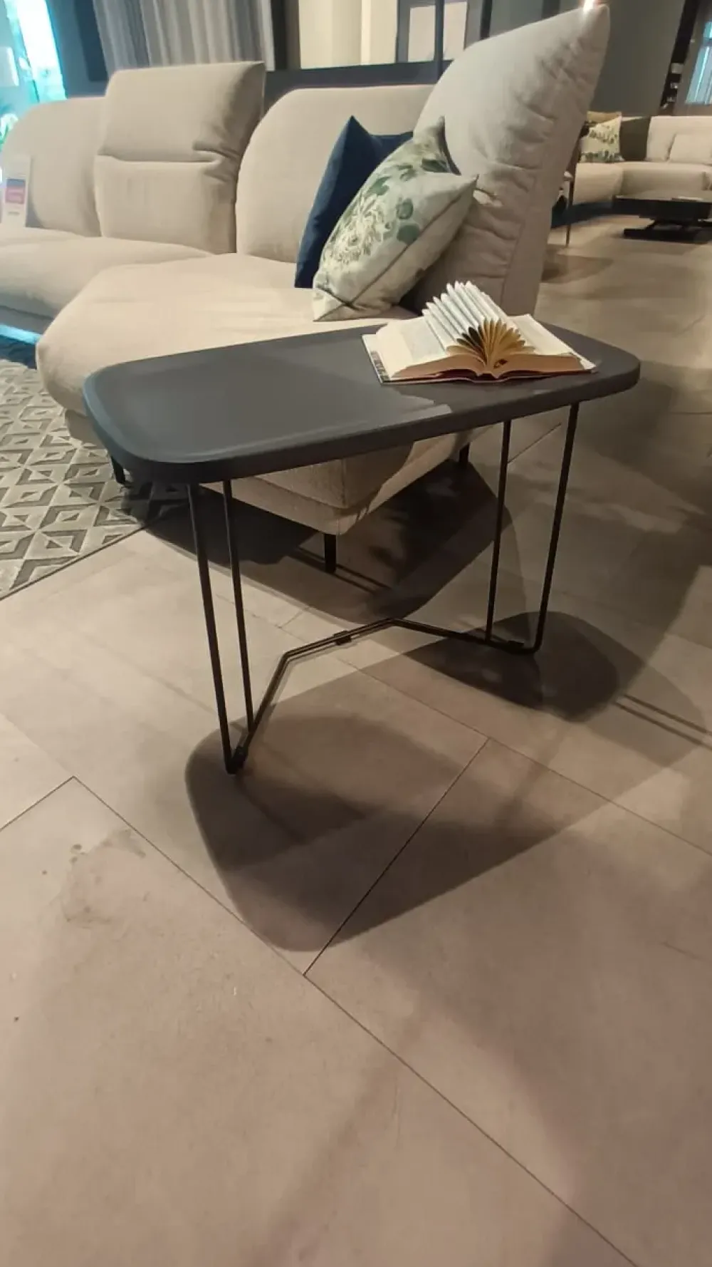 Tavolino moderno con piano effetto cemento antracite.