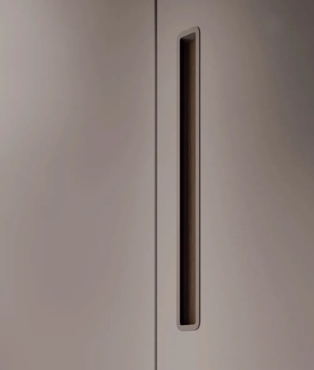 Armadio con anta battente split verticale caratterizzata da una maniglia in metallo incassata e laccata dello stesso colore dell’anta. La sua configurazione prevede la maniglia posizionata nellโanta di destra nel caso di un vano a due ante. Lunghezza 302,5cm, altezza 257,8cm e profonditร 62cm. Articolo su ordinazione con finiture di struttura interna e ante a scelta, la nostra offerta รจ a partire da300,00