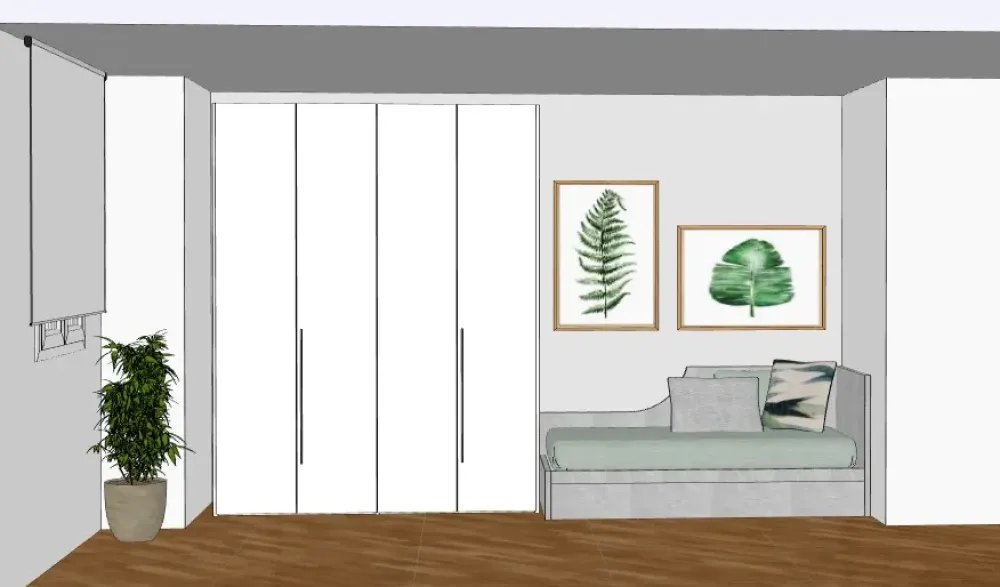con armadio 4 ante battenti e lettoin tessuto con secondo letto estraibile o contenitore